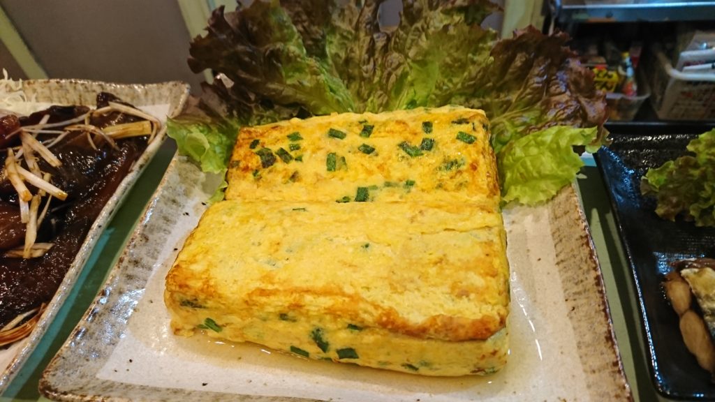 お出汁たっぷりのニラ入りだし巻き卵…大根おろしを添えていただきます。