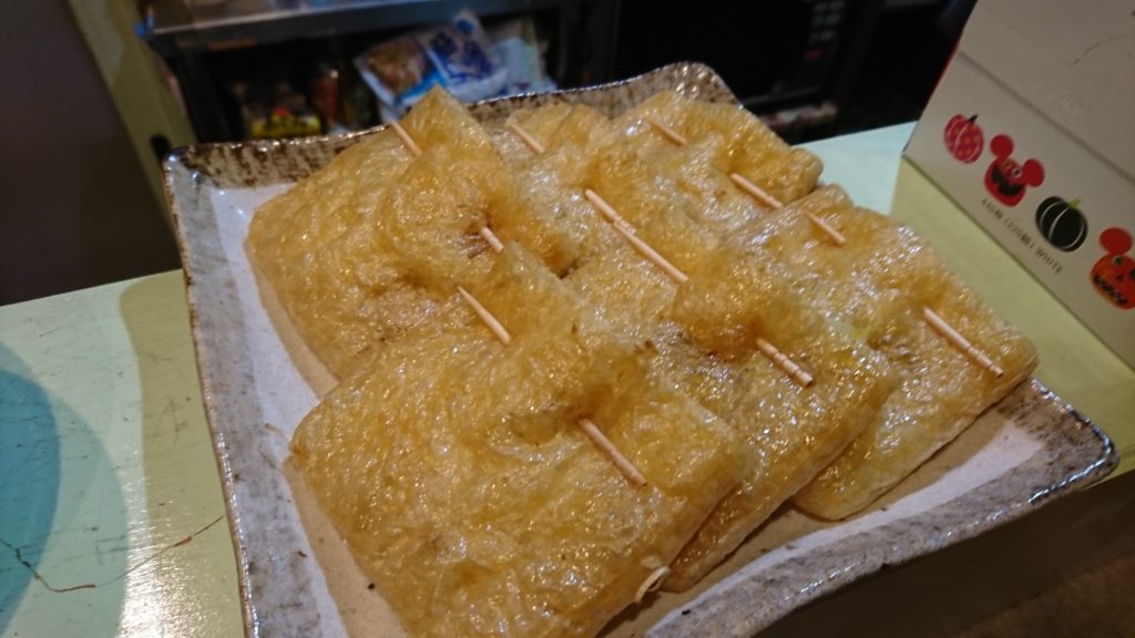 ・半分に切ってすりこぎで転がして中を開いた油揚げ(焼くので油抜きしないほうがカリッと仕上がります)